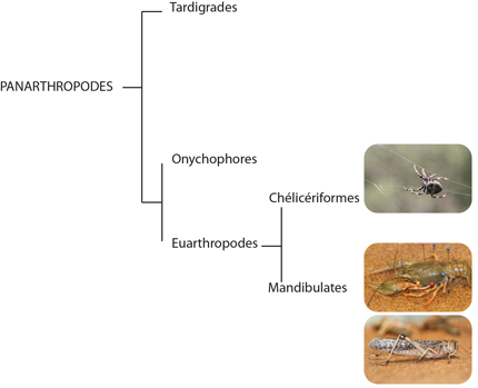 Les Panarthropodes se divisent en trois clades : Les Tardigrades, les Onychophores et les Euarthropodes. Les Onychophores et les Euarthropodes partagent un système circulatoire ouvert avec un cœur segmenté présentant des ostia, une hémocyanine semblable, une musculature des membres segmentée, et des néphridies. Les Tardigrades semblent plus éloignés sur le plan phylétique. Nous nous focaliserons principalement sur les Euarthropodes eux-mêmes divisés en Chélicériformes et en Mandibulates. Les organismes modèles choisis sont l’écrevisse (Pancrustacé Malacosracé), le criquet pèlerin (Pancrustacé Hexapode) et l’Epeire diadème (Chélicérate, Arachnide).