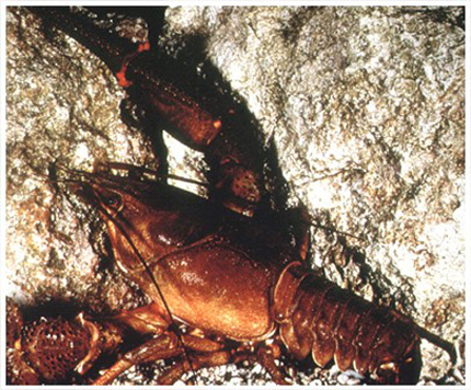 L'Ecrevisse autochtone, Astacus astacus, appelée plus simplement écrevisse à pattes rouges, a pratiquement disparu de nos rivières. A la fin du siècle dernier, elle a été victime d'un petit champignon parasite, que l'on connaît sous le nom de « peste de l'écrevisse ». A cette épidémie, il faut ajouter la pollution des eaux, mais également les curages et les rectifications des berges dont sont victimes nos rivières ! Dans ces conditions, comment trouve-t-on des écrevisses dans les poissonneries? Simplement grâce à l'astaciculture: les pisciculteurs produisent ces crustacés de façon industrielle. Il s'agit d'espèces étrangères: écrevisses de Russie, ou américaines. Echappées des astacicultures, ces espèces allochtones ont envahi les cours d'eau et deviennent invasives, éliminant les derniers représentants de l’espèce locale qui pouvaient y subsister.