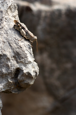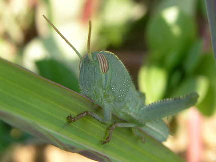 Ici, un Criquet en phase solitaire. Sa livrée est de couleur claire et assez terne, son mode de vie est sédentaire, et il ne représente pas de danger pour l’agriculture. Sa fécondité est faible et il se déplace peu.