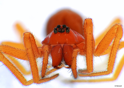 Contrairement à l'écrevisse et au criquet, l'araignée ne dispose pas d'yeux composés mais bien d‘ocelles de structure interne complexe, surtout chez des espèces chasseresses où la vue est importante pour poursuivre les proies.