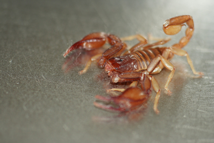 Les plus vieux Arthropodes terrestres sont probablement des Scorpions du Silurien, et leur forme est voisine de celle des scorpions actuels comme celui de la photo, et de celle des Euryptérides, un groupe ne contenant que des fossiles.