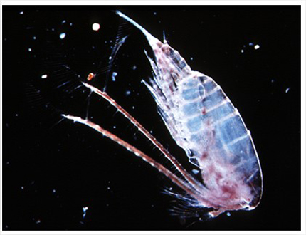 Les Copépodes aux antennes hypertrophiées pullulent dans les mers et les eaux douces, cette photo en est un exemple.. Le nombre de Copépodes marins est énorme, la plupart sont planctoniques et se nourrissent de phytoplancton. Ils sont alors un lien principal entre ce phytoplancton et les niveaux trophiques supérieurs, dans la chaîne alimentaire du milieu marin. La nourriture de nombreuses espèces de poissons est constituée en majorité de Copépodes. Ils en deviennent des indicateurs de pêche pour les marins: là où se trouve un banc de Copépodes, les marins sont sûrs de pêcher des harengs.